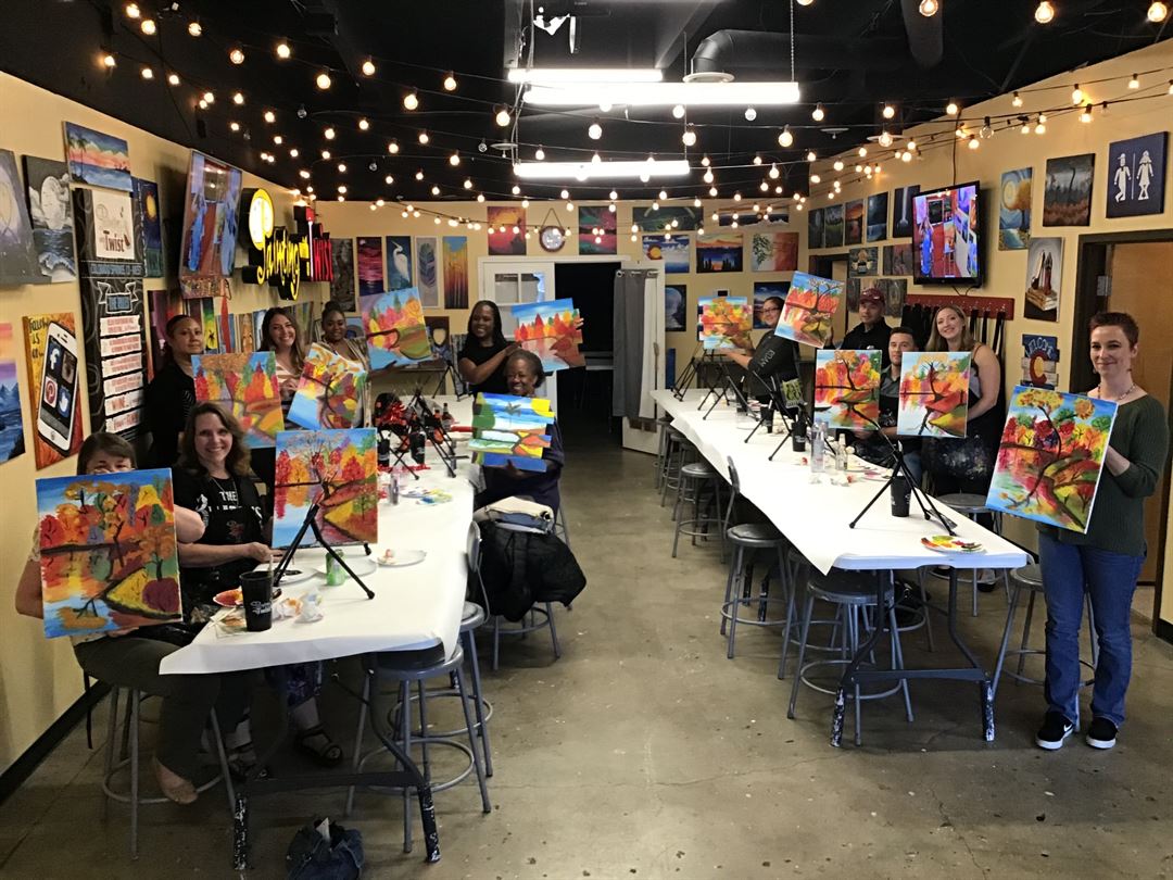 Are you looking for a unique and fun TWIST for your pARTy? Then grab your friends and book a private painting event with us! You'll get our private pARTy room or entire studio all for yourselves, the undivided attention of our expert paint instructor, and all the privacy you need to laugh, drink, and have fun. Whether you're planning a bachelorette party, Team Building, family reunion, or a long-overdue girls' night out, you can find space for everyone! We even do specialty events!