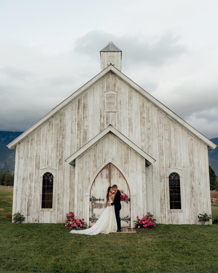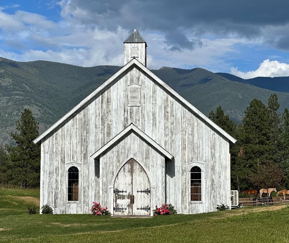 Beautiful Mountain View micro wedding venue located just minutes to Glacier National Park in the Flathead Valley, Montana. Complete with a stunning historic white chapel set against the Swan mountains. Onsite lodging in the charming farmhouse and 2 historic turn of the century homestead cabins. This is a working ranch complete with highland cows, horses, goats, chickens, and ducks. Lodging for up to 30 guests. All inclusive packages complete with elegant farmhouse tables, farmhouse chairs, place settings, and some decor.