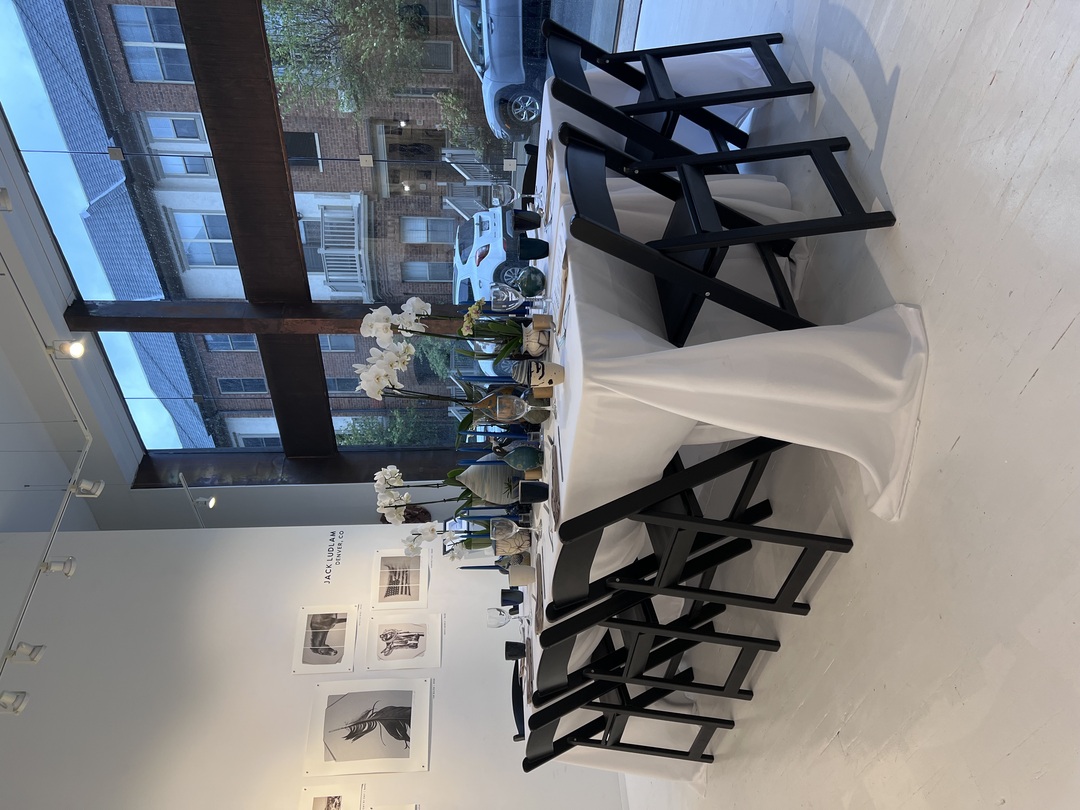 Surrounded by thoughtfully selected works and natural textures, guests experience an environment that feels both elevated and personal. The open layout allows for flexible event design, whether you’re planning a seated dinner, a standing reception, or a styled presentation. Soft lighting, clean lines, and artistic focal points create a memorable backdrop that requires minimal additional décor.