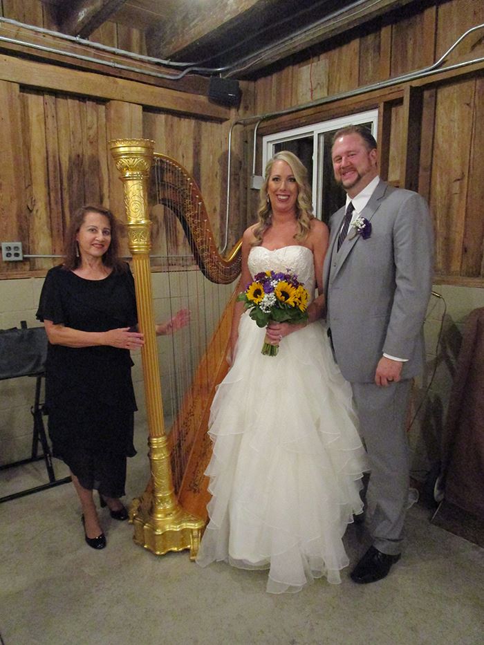 We had Miriam Weber Brown play her harp for our daughter’s wedding ceremony. When she was growing up in Worthington, our daughter had heard Miriam play at the 55 Restaurant for Sunday brunch many times. She was always fascinated by the harp and enjoyed Miriam’s playing. It was a thrill to meet Miriam again at a bridal show and of course, our daughter wanted Miriam to play at her wedding.