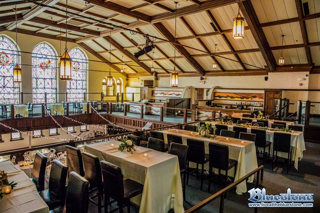 The Bluestone is an extraordinary venue that offers an unparalleled and unique experience for your special occasion, corporate event or wedding.The Bluestone is a newly renovated 120-year-old church that boasts three diverse levels, seven bars, soaring stained glass windows, and a gracious outdoor patio.