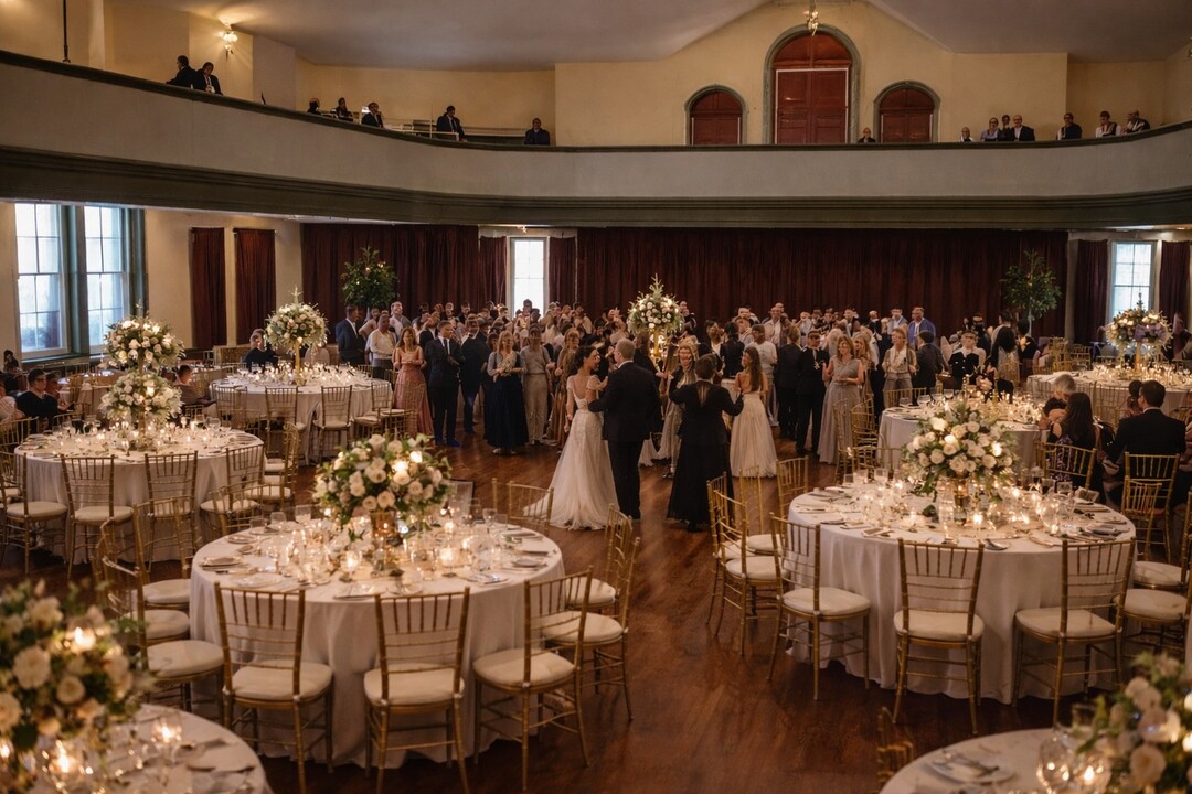 The Grand Hall, located on the second floor of the 1886 Stafford Opera House, is the epitome of elegance. Large enough to comfortably seat ~200 (up to 250), the Grand Hall will captivate you and your guests with its timeless elegance.