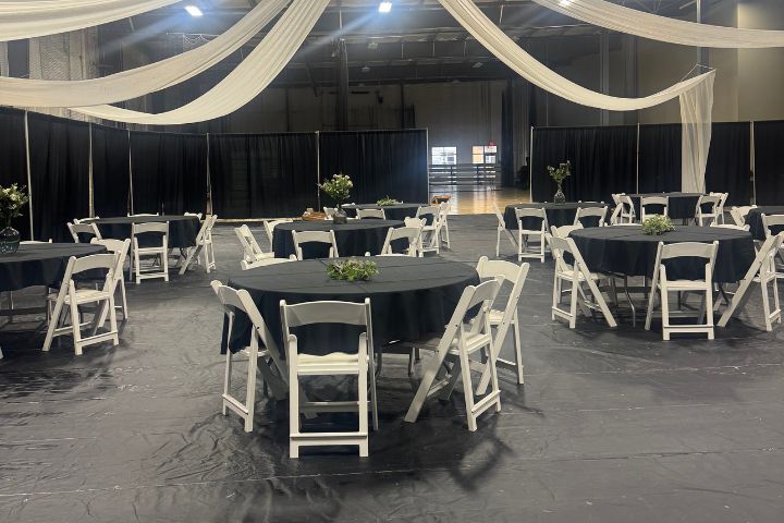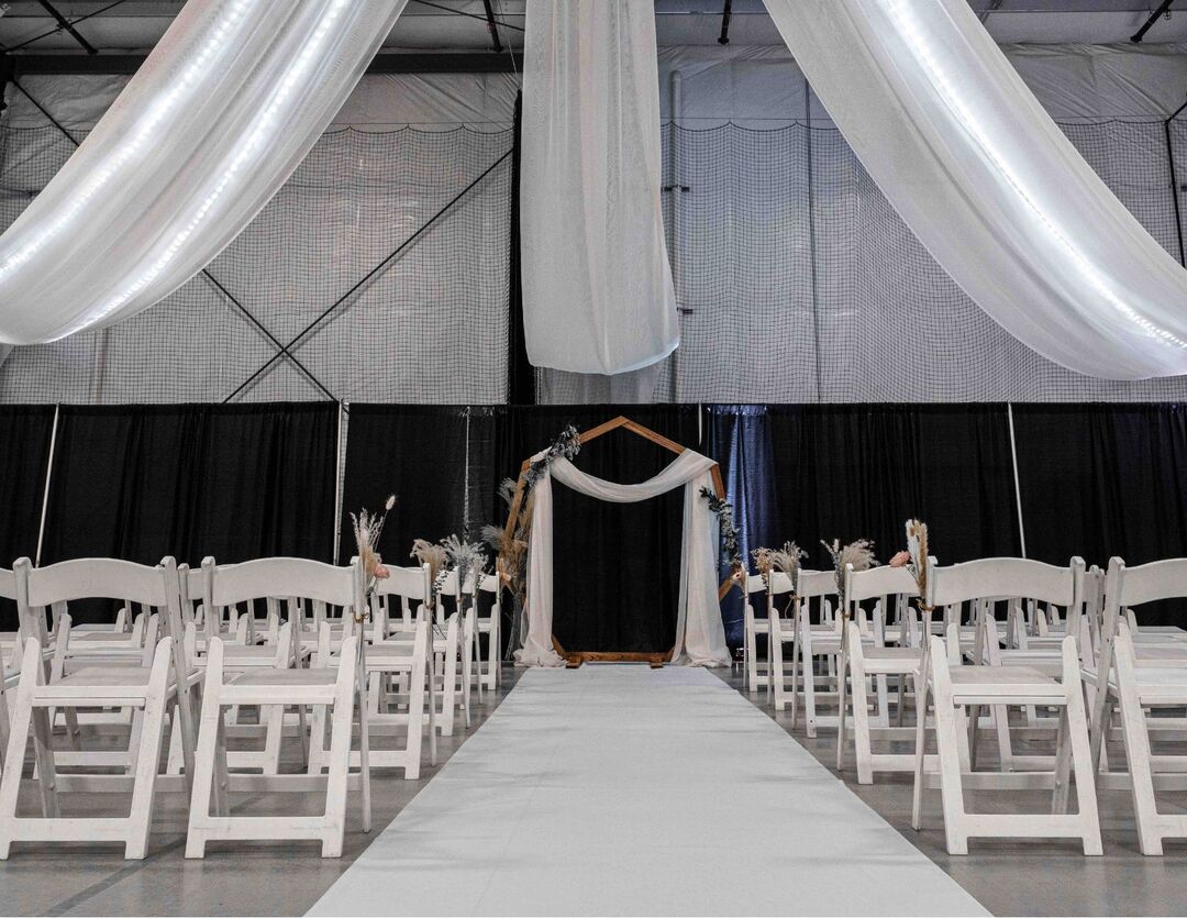 Kick off your celebration with our unique axe throwing cocktail hour—an exhilarating way to engage your guests and set a lively tone for the rest of the event. Our stunning drapery ceiling adds a whimsical touch, creating the perfect backdrop for your special day.