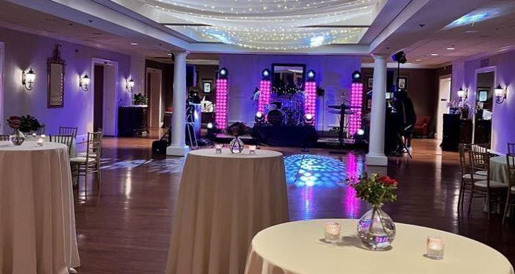 The Atrium features a beautiful hardwood floor, spacious dance floor, and elegant fireplace. It opens onto a brick and wrought iron Veranda with a spectacular view of the golf course, the Charlotte skyline, and the beautiful Carolina landscape.