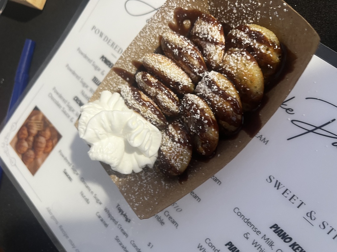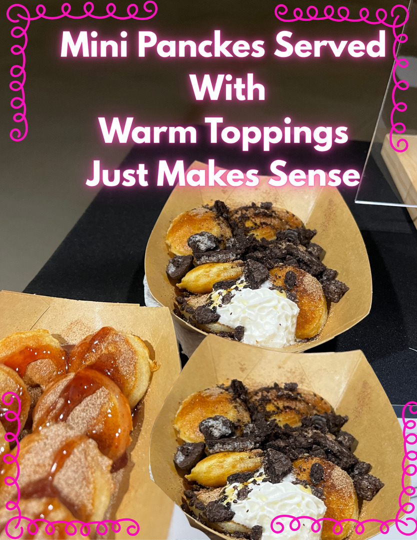 Our pancakes are made fresh to order, cooked to golden-brown perfection right before your eyes. Each fluffy bite-sized stack is a treat on its own, but we take it up a notch with irresistible toppings like rich chocolate syrup, crushed Oreo crumble, fresh fruit, and more. Whether you're hosting a crowd or treating yourself, our mini pancakes are guaranteed to steal the show.