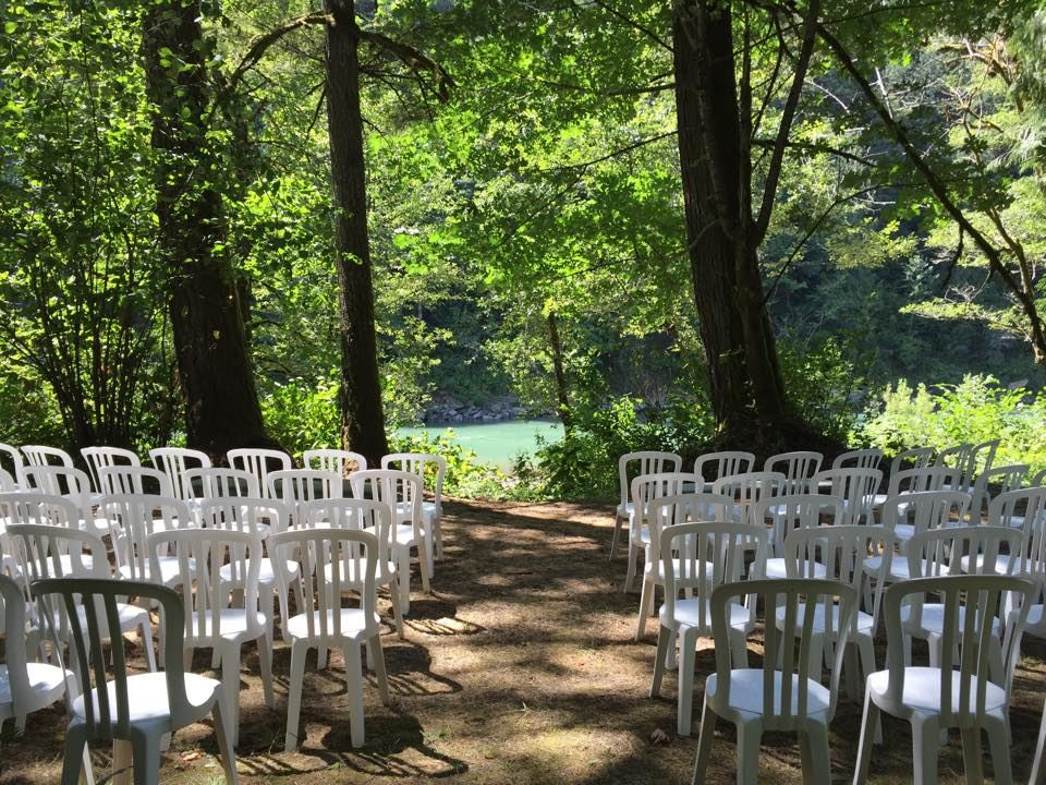 Since Oregon weather is unpredictable, we are in the lucky position of being able to offer both outside settings as well as an inside venue.