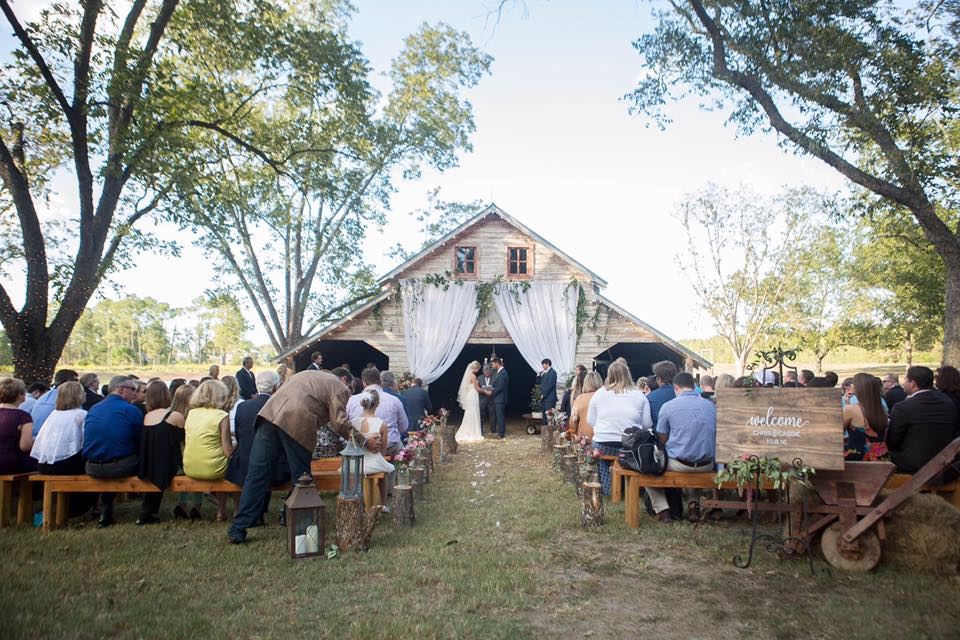 Located in Cordele GA, Fritz Farm is the perfect venue for your wedding or special event. Over 180 pecan trees create the perfect backdrop for your celebration. Whether you select the beautiful pecan orchards, open pole barn, or the background of the pond with fountain or Antique White barn, you are sure to find the perfect location for your dream wedding at the farm. Enjoy your reception inside the main barn, or under the lights. Afterwards, relax in the swings surrounding the firepit, or dance the night away under the lights of the pavilion. Overnight accommodations available in the charming bungalow and loft.