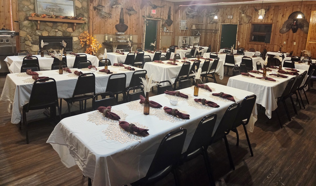 We are a restaurant and full kitchen available to rent for your upcoming corporate event or private party. Our cozy dining room complete with stone fireplace, wood flooring, and a rustic, cozy northern Wisconsin vibe is perfect for any gathering. You are able to simply rent the space or we have many different food package options available as well including buffet, plated, carving stations and more. Give us a call to learn more today.