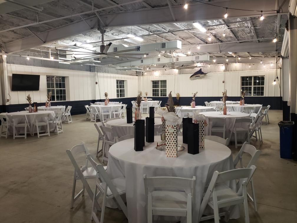 Special Features: Large open event space with room to fit 130 guests comfortably. Stage for band. Full bar and kitchen, catering optional. 23 room hotel accommodations, 3 cabins, full marina with guided fishing trips available.