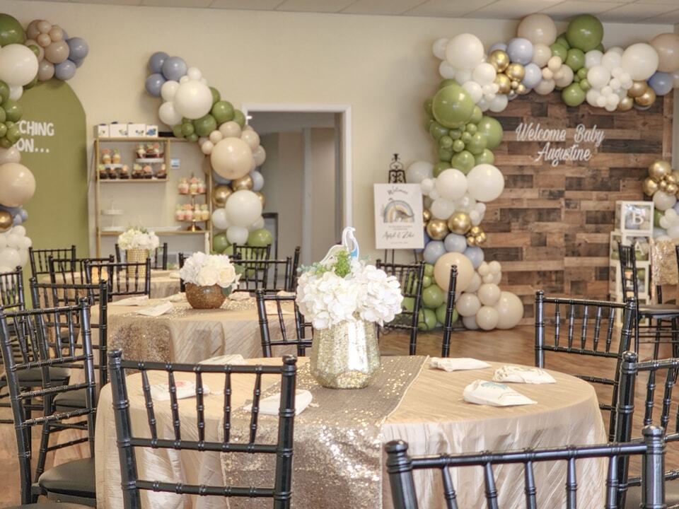 Our party venue has the character and charm to make your celebration truly unique. With a layout that perfectly accommodates showers, birthday parties, graduation parties, bachlorette/bachlor parties, corporate meetings, holiday parties, small weddings, and any other intimate celebrations. Let us help you create your dream event. Prices start at $100/hr. Celebrations can also come to your location to decorate any event of any size.
