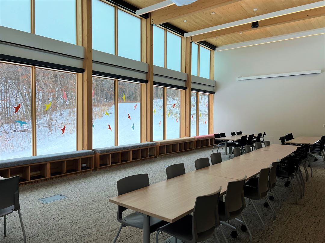 Ravine Landing is the perfect place for your next family gathering, celebration or event. Nestled in the heart of the ravine, your guests will be surrounded with natural splendor. This impressive multipurpose room features an open and airy atmosphere with large windows overlooking the park and easy access to trails, forest, and lakeshore. Rental of the room also includes use of the outdoor covered picnic area and firepit. This space is available for private event rentals in April - October.