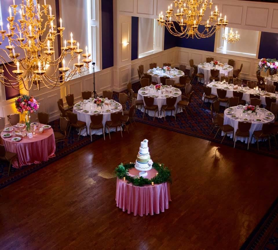 Featuring a grand staircase, balcony overlooking the ballroom and beautiful two story windows, the Grand is the perfect setting for your dream wedding.
