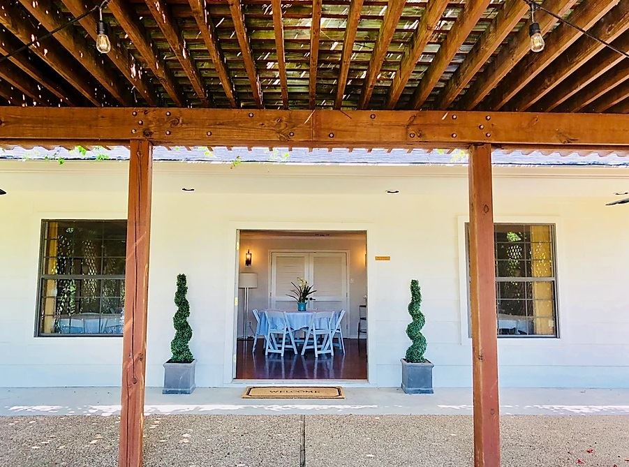 Intimate outdoor weddings are our specialty! The grounds are beautifully landscaped, providing multiple outdoor wedding options, and a natural picturesque setting for our rustic wedding set among towering oak trees and lush green.
