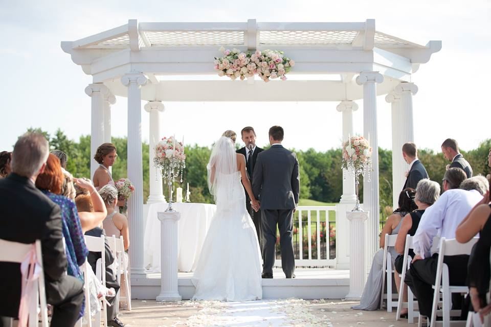 White Hawk Country Club's gorgeous white gazebo, overlooking our award winning golf course, fabricates the ideal backdrop for your wedding ceremony. The 2,000 square foot patio, complete with our white garden chairs, creates a beautiful site for those seeking a romantic and intimate atmosphere to create a lifetime of unforgettable memories. You will also notice manicured landscaping, including classic water fountains and elegant floral arrangements which add a sense of beauty to your memorable occasion.