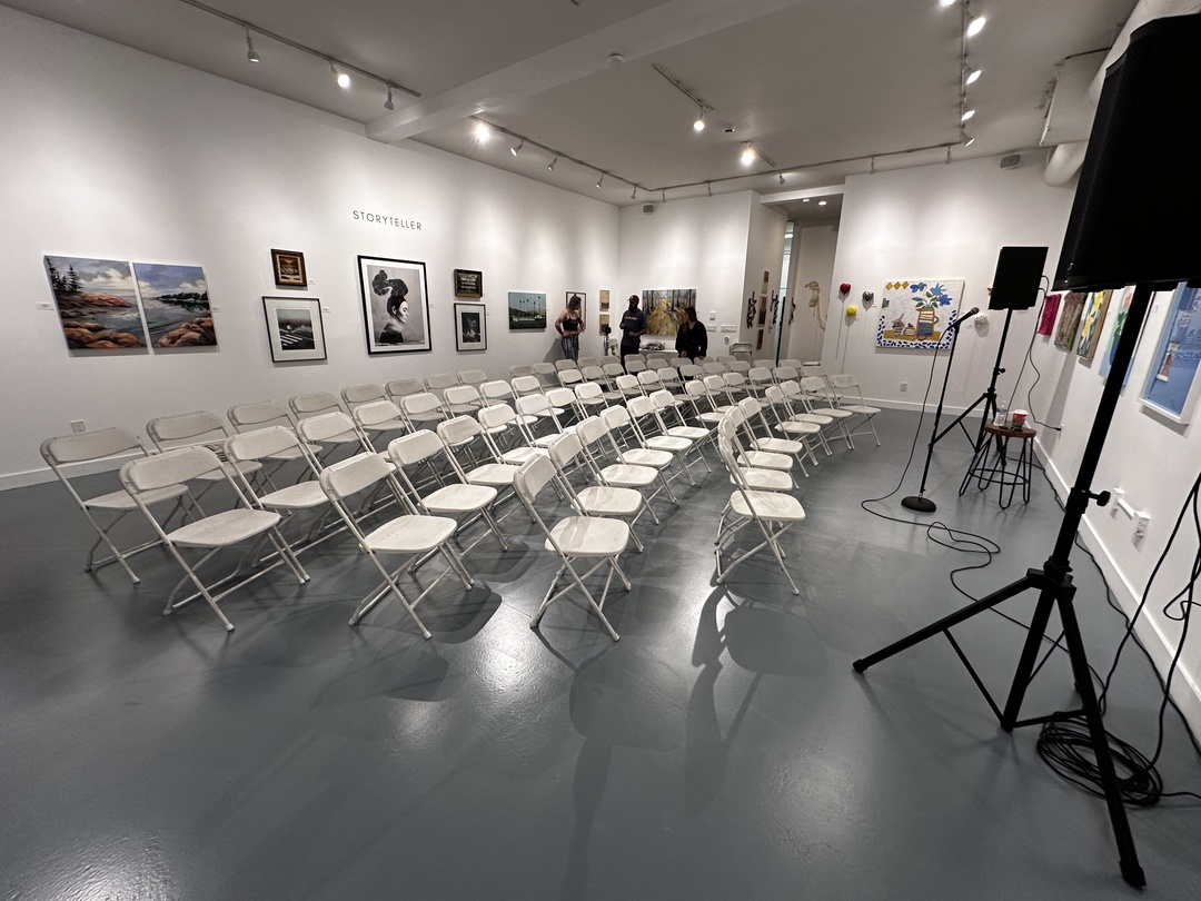 Our 1400 sq ft space accommodates about 90 guests cocktail-style and 50 guests for a seated dinner. We have a movable wall that can open the main gallery pace completely or create interesting floor plans for your event needs. We are a contemporary art gallery first, so your event will always have a beautiful backdrop that we can change to fit your vibe!