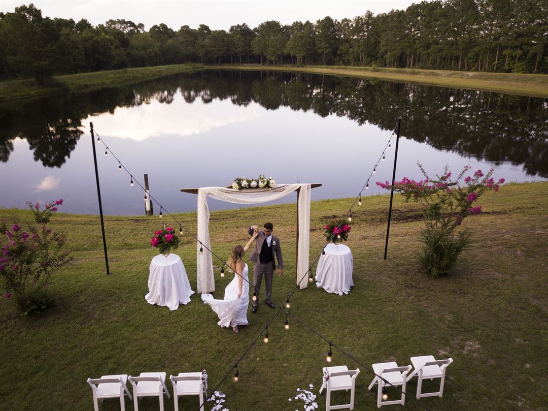 We specialize in elegant, rustic weddings set in a quaint, country atmosphere. We also host a variety of other events, including company picnics, fundraisers and many more special occasions. Only 30 minutes outside of Wilmington, the rural North Carolina landscape is the perfect backdrop for an unforgettable experience. Ask about our outdoor event space options, including a serene pond setting, or an enchanting spot nestled amongst the vineyard.
