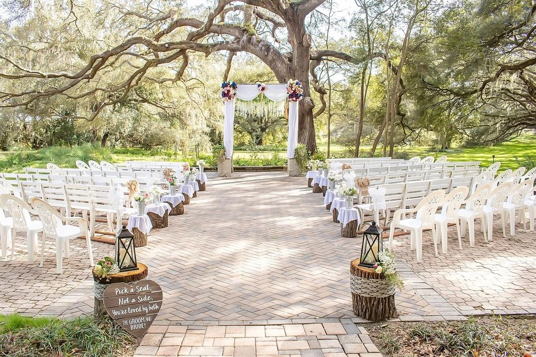 Nestled in the rolling hills of Dade City, Florida, Laurel Wood Gardens is a 20 acre private estate that boasts a lush landscape for perfect photos. It is surrounded by an additional 1000 acres of picturesque landscape. The estate is available for both the ceremony and the reception Your vows will be spoken in the heart of nature - witnessed by your friends, family, and a three-hundred-year-old oak tree. After the ceremony of your dreams, dance the night away in the spacious reception area.