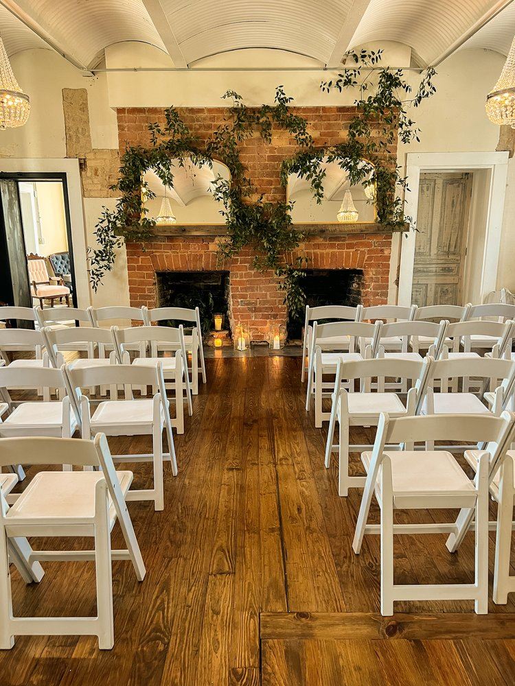 Boasting 2,300 square feet of climate-controlled interior space, our venue features two ballrooms adorned with stunning chandeliers, antique fireplaces, exposed brick walls, and Victorian details that add character and sophistication to any occasion.