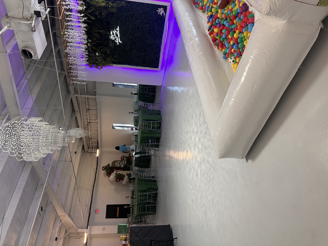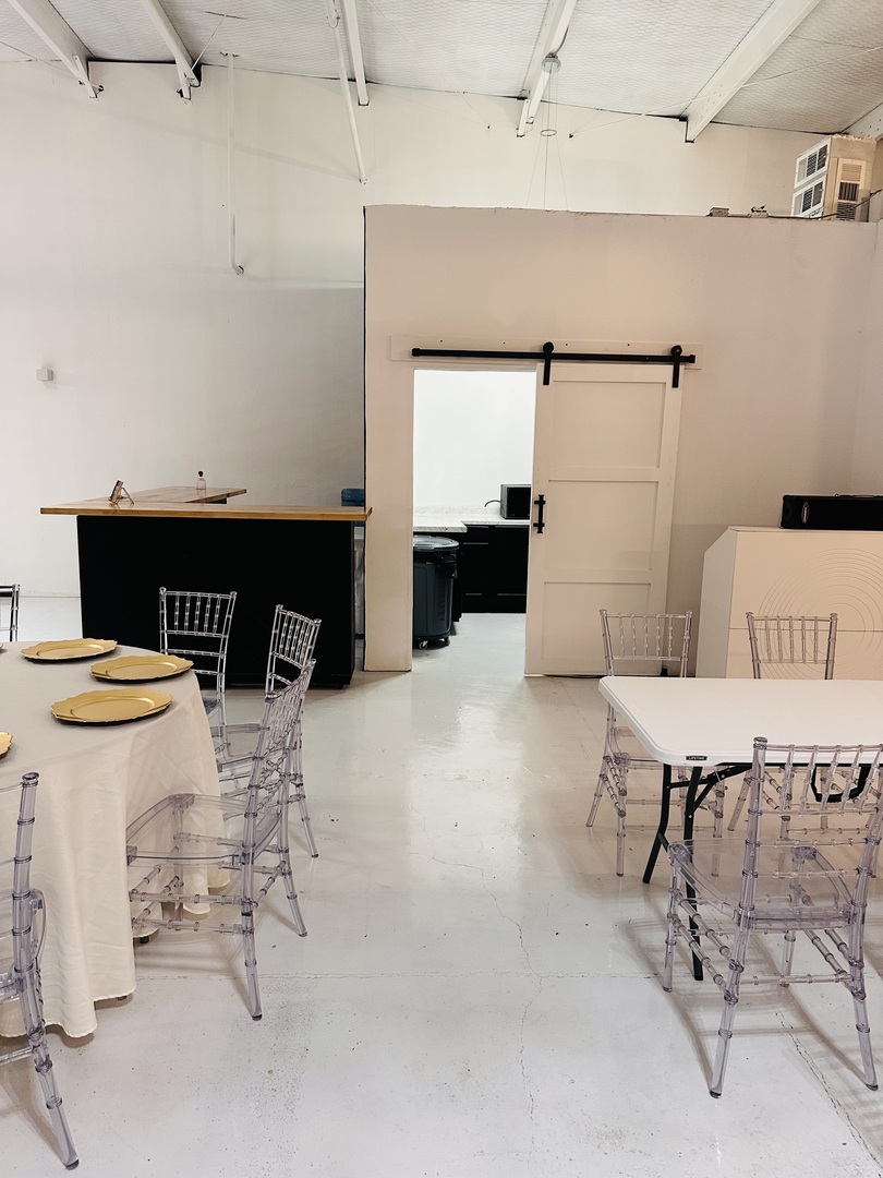 This venue is over 2500q ft and can accommodate 100 people seated and 120 people standing. includes tables and chairs.