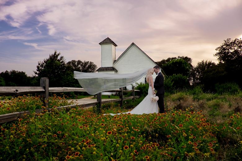Nestled in a rare North Dallas historic site, the Frankford Church offers a beautiful location for weddings that is at once charming and simple. Built in the late 19th century, this quaint church and its surrounding grounds have seen a great deal of history. Native Americans and pioneers in covered wagons camped in the nearby tall grasses of the Blackland Prairie. Today, this beautiful location provides a pastoral backdrop for a lovely wedding ceremony that is reminiscent of more gracious times. Guests can enter the little white church and seat themselves in rich, mahogany colored pews, enjoying their surroundings as the natural light streams in from expansive arched windows. Beautiful views of the adjacent fields and flowers will only add to the venue’s beauty. Exchange your vows beneath romantic pendant lighting, which illuminates the church’s carefully restored interior. After the conclusion of your ceremony you can ring the church bell to announce your marriage.