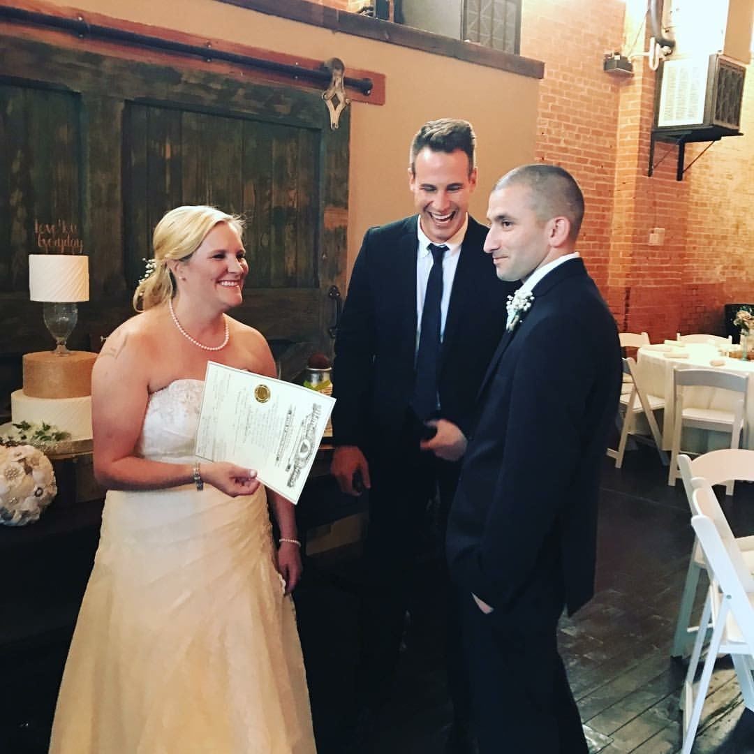 Our officiants are real licensed/ordained ministers (not online), love officiating weddings (too many of them to count), and are perfectly suited for today's bride and groom.