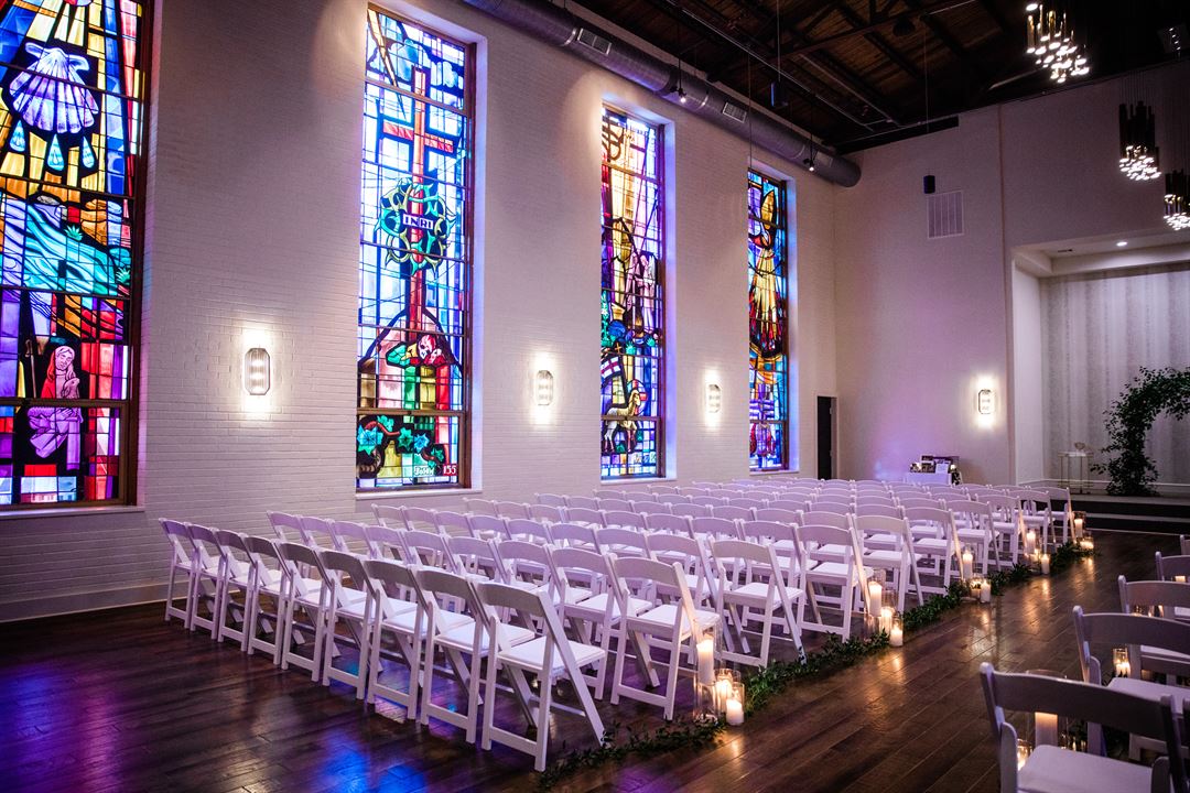 Chatelet boasts soaring barrel ceilings and natural light defines the main hall, making it the perfect setting for any celebration. A timeless feeling pervades the space with original stained glass windows, beautiful entry doors, and hardwood floors throughout. With 2400 sq ft and a 150 guest capacity, Chatelet is the ideal location for any occasion.