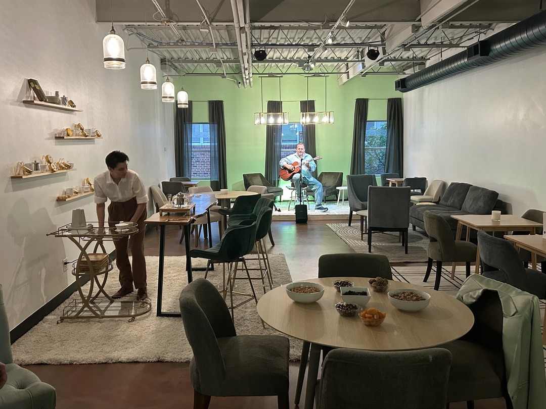 A beautiful space for your special event. Sincerely Tea House is an intimate tea room offering over 50 teas from around the world. Relax at a table, a couch, or a comfortable chair arranged in groups of two and four and hosting up to 24 people for your event. Teas are prepared table-side in traditional and cultural ways sure to be an experience for you and your guests. Enjoy scones, muffins, cookies, and other treats curated to match your choice of tea. Featuring high-fidelity tea-house music or a performance of live acoustic jazz guitar. Located right in the middle of wonderful downtown Davidson across from Davidson College with easy access from I-77 north.