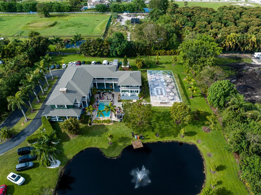 Discover the exquisite charm of the Saint Patrick Palace, a private estate nestled in the quaint town of Davie, Florida, conveniently situated between Fort Lauderdale and Miami. Behind the gated entrance, you’ll find five acres of beautifully landscaped grounds, an elegant two-story main residence boasting four bedrooms and four bathrooms, and a two-story guest cottage offering one bedroom and two bathrooms. Delight in the tranquil ambiance provided by an idyllic pond adorned with a fountain and dock, a heated saltwater pool complemented by a spacious travertine-tiled deck, and an expansive 80-foot by 40-foot paved outdoor area perfect for hosting events.