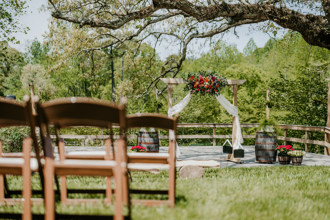 - Guest House which has a living area downstairs, restroom, kitchen, patio with a firepit, Bride and bridesmaid room, sitting area for the bridal party.