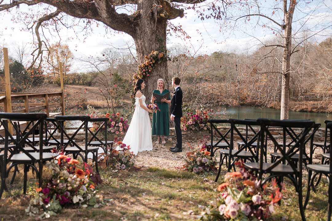 Uncover the serene charm of our farm venue in north Georgia: Say “I do” under a majestic 188-year-old Oak tree, or beside an original log barn, with a backdrop of rolling hills, a charming pond, and buildings from a different era.