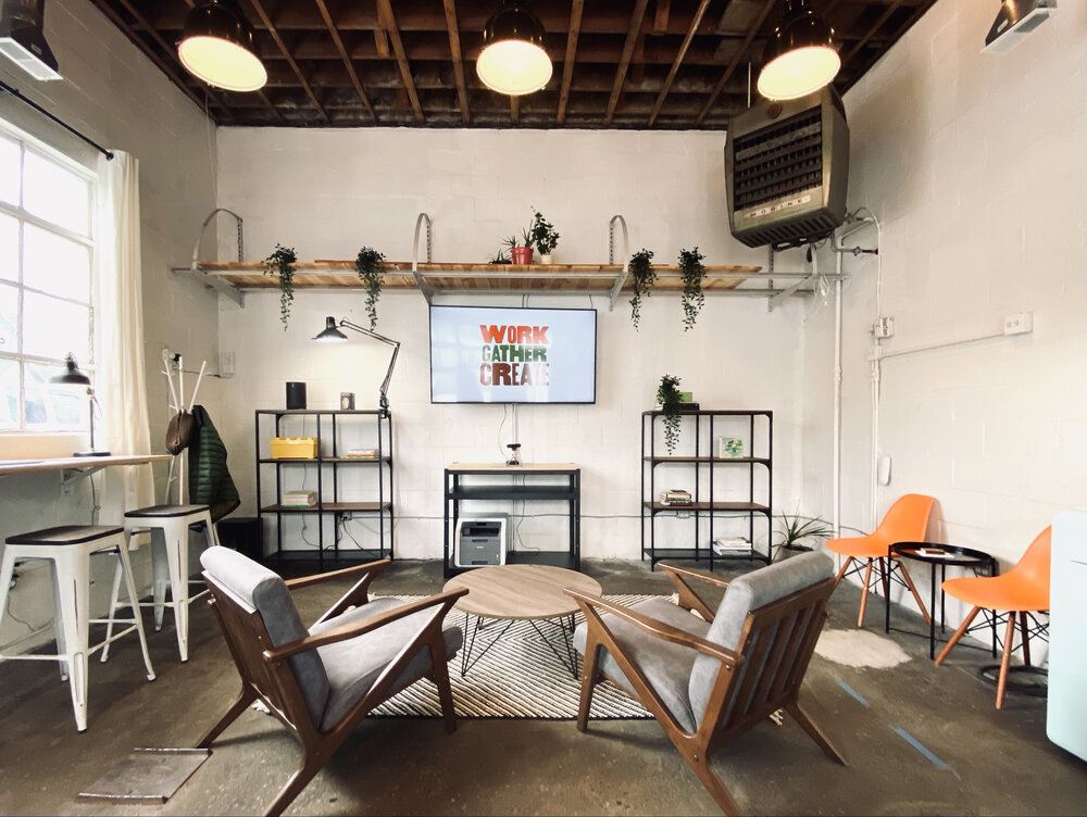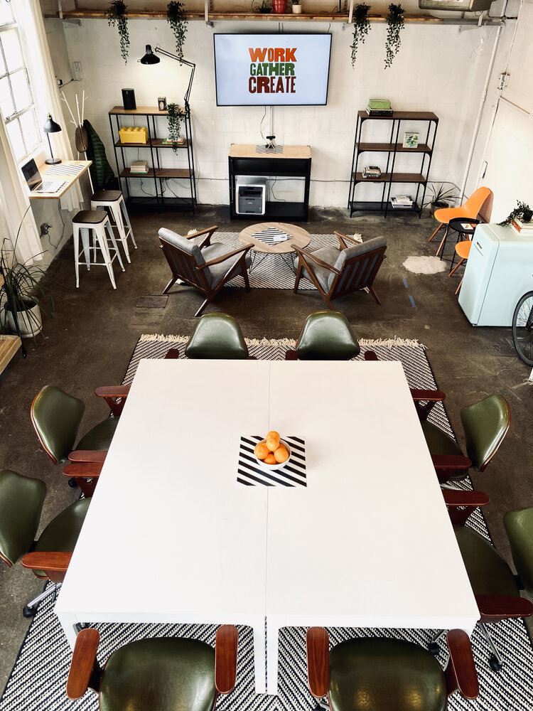 With three spaces that can be booked independently or together, The Garage can host you for an hour or two in our indoor space for some solo work time; or you can bring in the entire office for a conference. Our patio and commons space are also perfect for pop-ups and events, including baby showers, birthday parties, performances, and more.