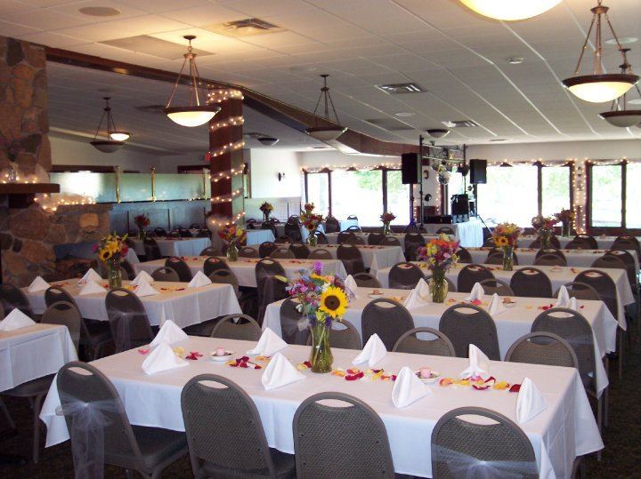 Our club house seats 200 guests. With a fieldstone fireplace, 48-foot bar, dance floor, and many windows over looking the golf course, it is a very beautiful and relaxing atmosphere.