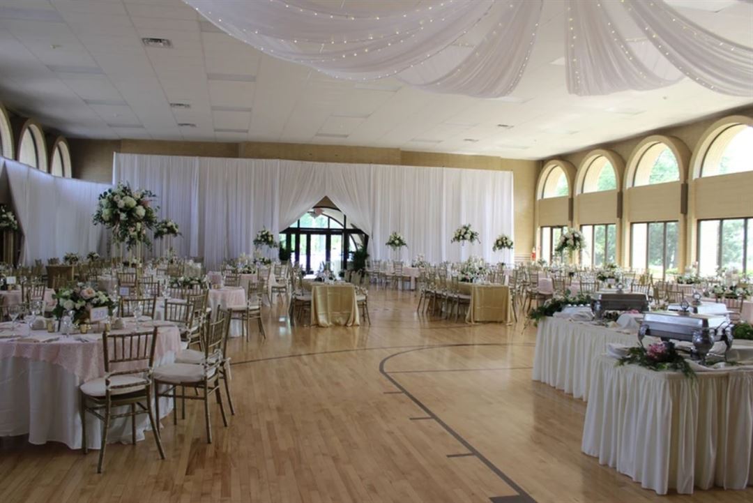 The Annunciation Greek Orthodox Church Memorial Center located near Downtown Dayton is the perfect venue for Wedding receptions, recognition banquets, dances, galas, and other large events. This 6,000 square foot venue offers a stage, dance floor, 17 foot tall ceilings with large arched windows for natural lighting. The room holds 400 people and can be beautifully transformed to fit your needs.