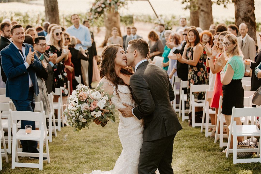 Let us host the vineyard wedding of your dreams at Domaine Lumineux Our ceremony space is surrounded by vines and a grove of oak trees, all perched atop the Dundee Hills for picturesque views of the Willamette Valley. With over 10 years of experience as an event venue, our wedding coordination and award-winning preferred catering teams know the importance of flawless execution and attention to detail for the most memorable of moments.