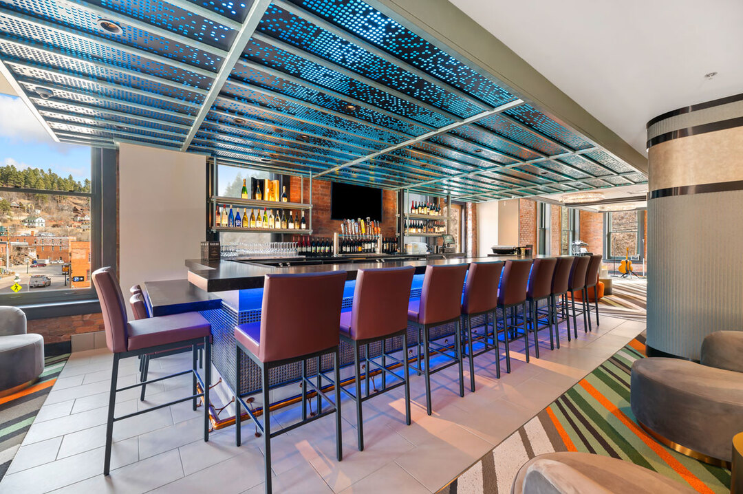 We offer exceptional spaces for business retreats and special events. Whether you’re hosting a small business party, a grand celebration, or an intimate gathering, our versatile venues provide the perfect setting. Equipped with helpful tech for visual aides, impeccable service, and elegant surroundings, your event is sure to leave a lasting impression. Our Adams Room is a unique, contemporary space that houses a full-scale bar. Named after W.E. Adams himself, this room is filled with plush, unique seating options, custom lighting, carefully-restored wall murals, and a stunning view of our two-story installation, Raining Gold, as well as beautifully-restored large-scale windows to enjoy Historic Sherman Street, Outlaw Square, and the Black Hills beyond.