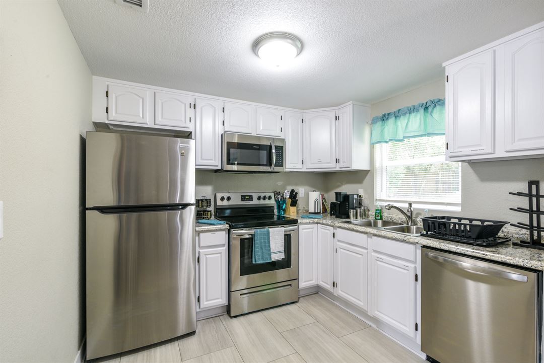This is a clean beautifully renovated mid-century charmer with a large fenced backyard. It boasts a fully functional modern kitchen and updated baths, brand new stainless steel appliances, w/fresh paint, new 100% waterproof laminate flooring, and is very tastefully decorated.
