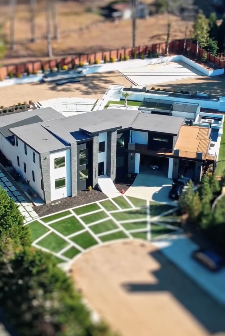Inside offers soaring ceilings, open concept design, sleek bar and lounge, multiple large TVs, and a theater and game room with a custom billiards table. Bright natural light makes it perfect for filming, photography, interviews, and content creation.