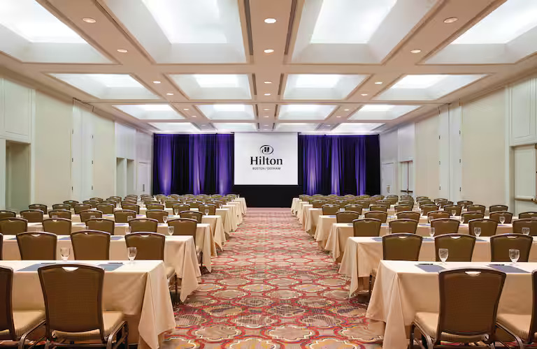 Plan a meeting or event at the Hilton Boston/Dedham hotel, ideally located just 20 minutes from downtown Boston and 30 minutes from both Logan International Airport and Providence, Rhode Island.