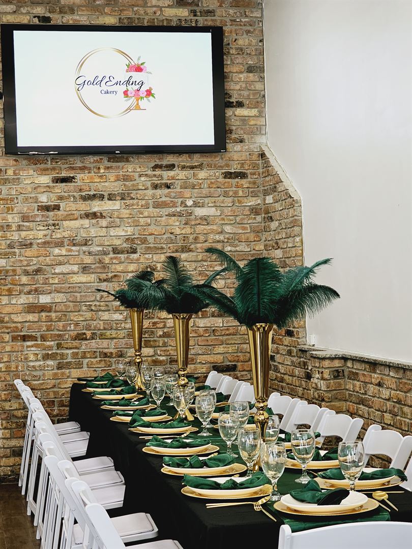 Rent our space for your next event! Gold Ending Cakery specializes in making every event golden. We are taking our model to new spaces and offering it to you! Our event space is perfect for book signings, baby showers, gender reveals, bridal and wedding showers, graduation parties, business events, birthday parties and so much more. If you need a space, our venue rental services make planning your special event a breeze!