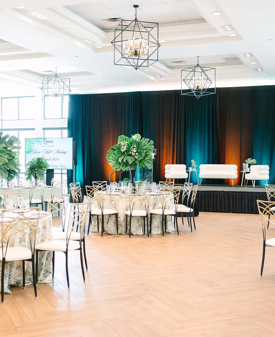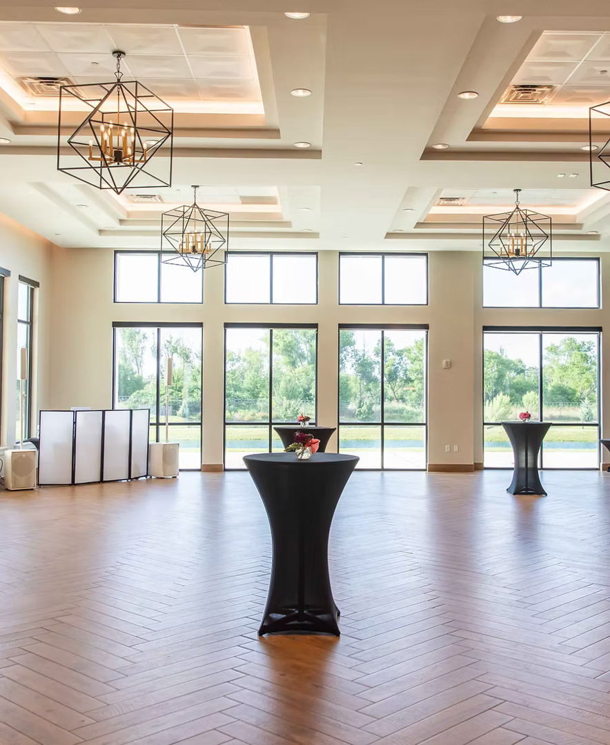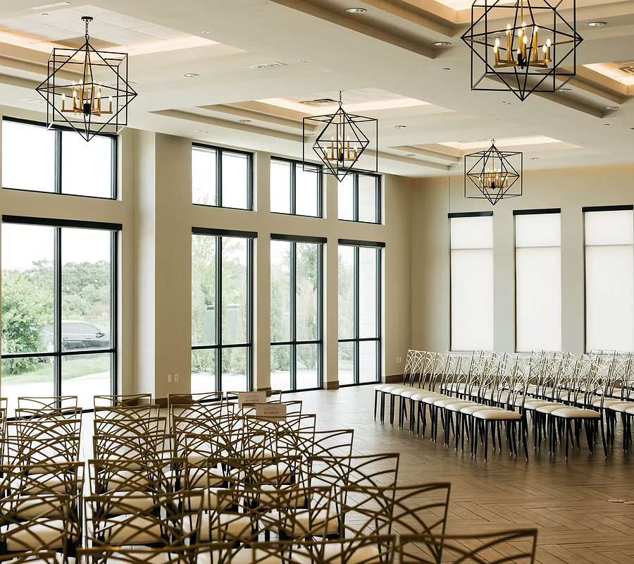 A modern venue amid rustic ones centrally located in Corinth, Texas. We are the perfect destination for surrounding cities in the Dallas-Fort Worth Metroplex. The Latin word "apricus" means "warmed by the sun," reflecting the state of mind we want our clients to gain through our services, which reveals their sense of delight and gratitude from working with us. Apricus Venue offers a full-scale event space ideal for weddings, corporate events, and social gatherings. Our contemporary ballroom serves as the centerpiece of our venue, featuring modern design elements and flexible layout options to accommodate a variety of event styles and sizes.
