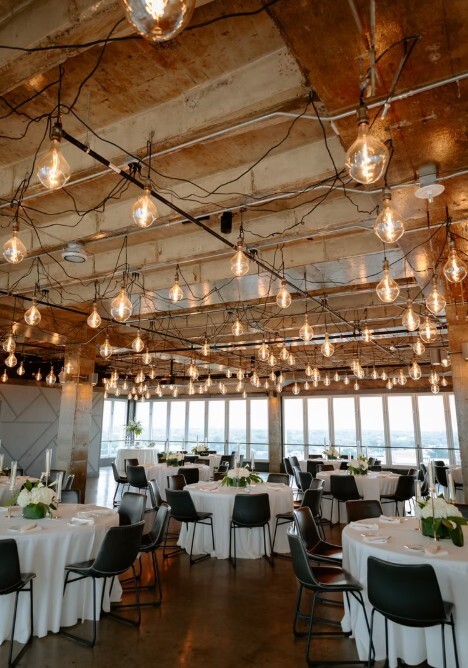 A spectacular view with 3,200 square feet of customizable space in the heart of the Downtown Denton Square. This must-see venue will offer you the one-of-a-kind celebration experience you’ve been searching for. Hundreds of handblown glass bulbs delicately suspend from above while floor to ceiling windows reveal sweeping panoramic views from every angle. Come marvel at the magic that is Sunago Bell. The celebration you create with us will be truly unforgettable.