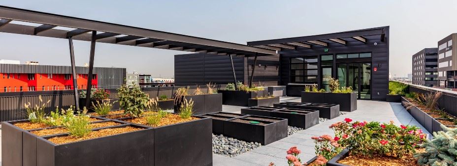 Take in the Denver skyline from this rooftop patio in RiNo.
