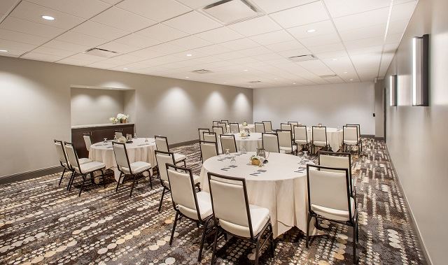 The hotel can also offer discounted rates for sleeping rooms and getting-ready rooms for weddings taking place at our venue. For ceremonies, we can flip the room during cocktail hour, we can offer our Magnolia Lounge, or we can offer awards ceremony setup.
