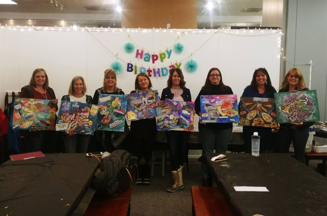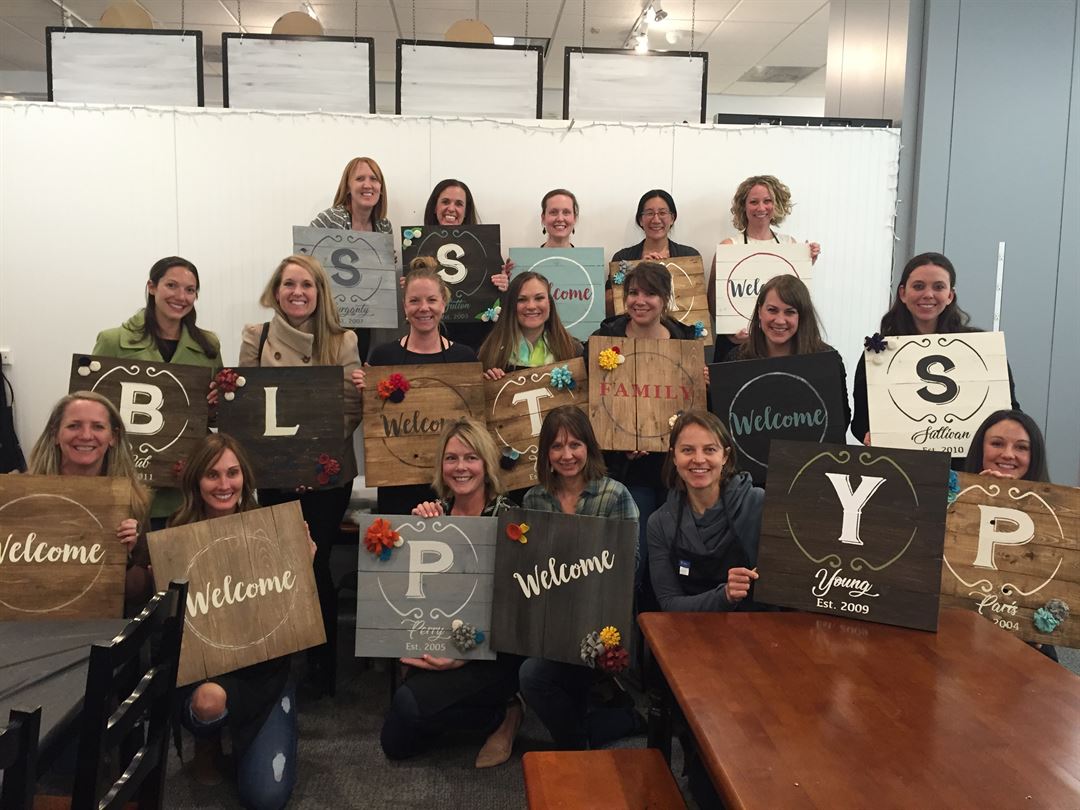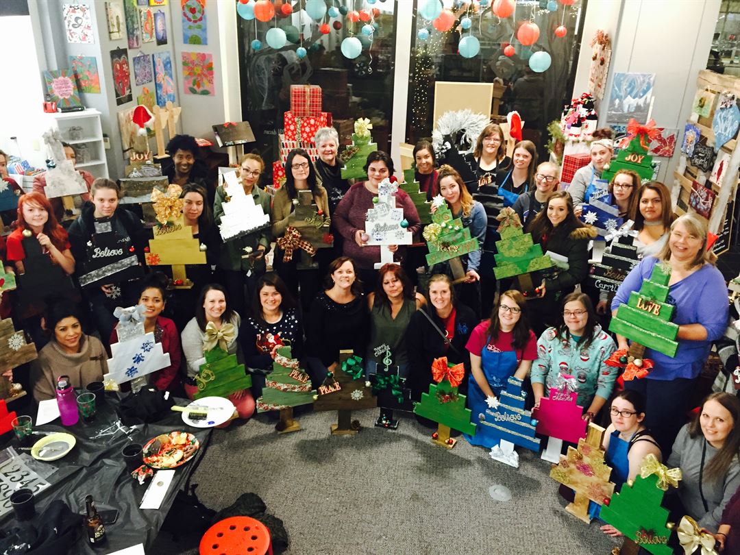 If you are in need of a wonderful event space rental for networking groups, private classes, private parties, business meetings, conferences and more- we have the perfect space! Our space is full of art, and can be decorated to match your theme for an additional cost. You may add on a arts, crafts or wood sign project (or team building activity) or simply rent our space. You are welcome to bring in any outside food, drink (including alcohol), or decorations you wish. We also have catering services through Chuy's Tex Mex, Relish catering, and Creme icecream shop. Our larger studio is located in the Belmar Shopping District (125 person max) in Lakewood, and our smaller studio is inside South West Plaza mall. (40 person max)