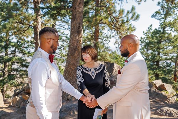 An Ordained Minister Marcia has been creating ceremonies and presiding at weddings since 2000. Marcia usually meets with couples in Denver (if possible; otherwise details can be worked over the phone or via Zoom) to create a customized ceremony that will meet the couple's desires. Marcia will also publish the final ceremony as a unique book, a keepsake for couples, O will officiate at the Wedding. The charge for this service is $400 (with reasonable travel fees for Marriages well outside the Denver metro area.) Marcia loves and feels it an honor to create ceremonies and officiate at marriages. Additionally, Marcia's company, the Image Maker, specializes in wedding photography and videography services. The Image Maker fees are quite reasonable.