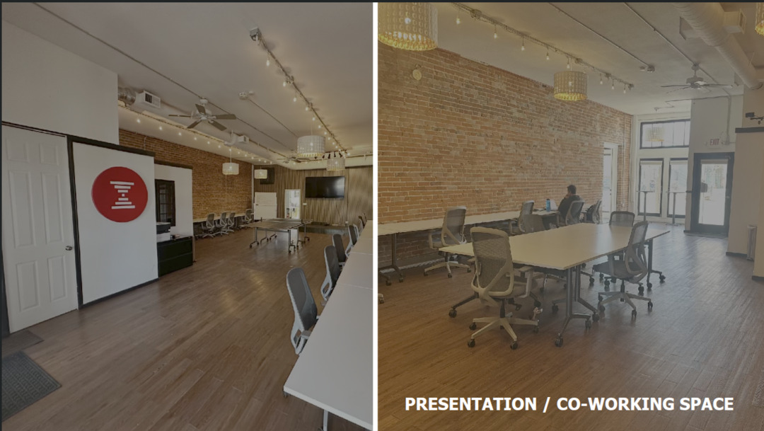 The Space is a two-story creative office building totaling approximately 5,250 square feet. The main floor features an open event area that can be configured for presentations, networking, or seated gatherings. A conference room on the lower level is available for smaller breakout sessions, board meetings, or podcast recordings. The building also has a backyard patio with turf, ideal for outdoor receptions, casual happy hours, or warm weather events. Private offices on the upper level provide additional space for speakers, organizers, or VIP guests who need a quiet area before or during an event.