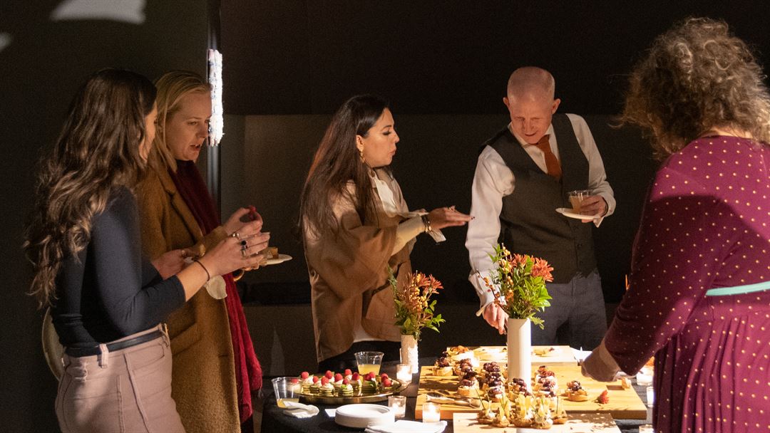 We are located on the first floor of The Coloradan building next to the Union Station train tracks, providing transit and ride-share options in addition to an underground parking garage. Our dark gray gallery walls display a rotating variety of visual artwork, a backdrop perfect for any occasion. This is a cozy, intimate, and creative space you can share with colleagues and friends. Union Hall provides a customizable space that can accommodate a variety of functions including a catered dinner, cocktail hour, holiday parties, professional presentations, and more!