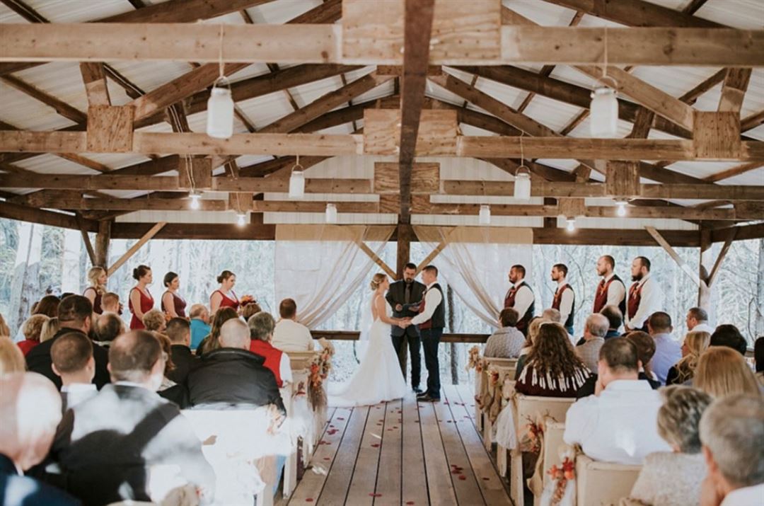 Nestled on 44 acres and equipped with a cabin, an event center and a covered outdoor ceremony space, Merry Ledges is the perfect setting for the country wedding of your dreams.
