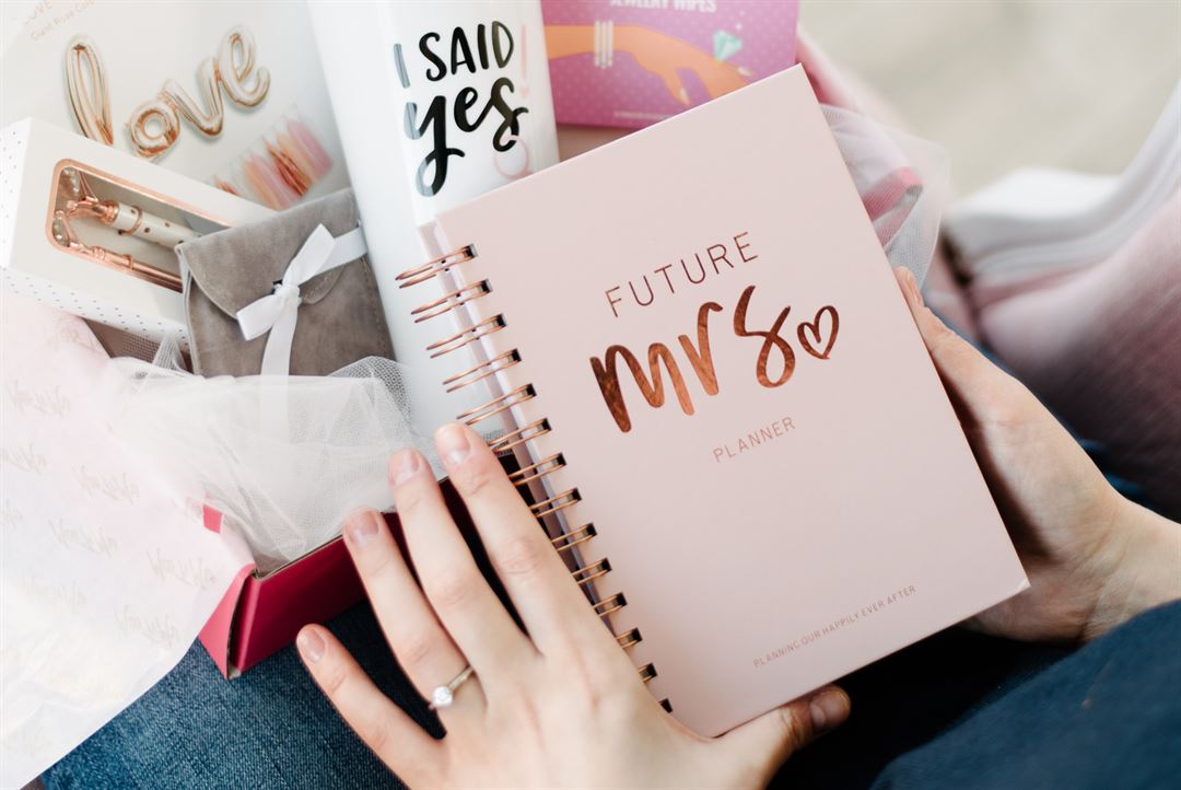 Beautiful bridal box!I loved my box with fun and unique bridal presents. Specially I liked planner and diamond necklace. Shipping was very quick. I will definitely recommend you to the future bride- to- be!