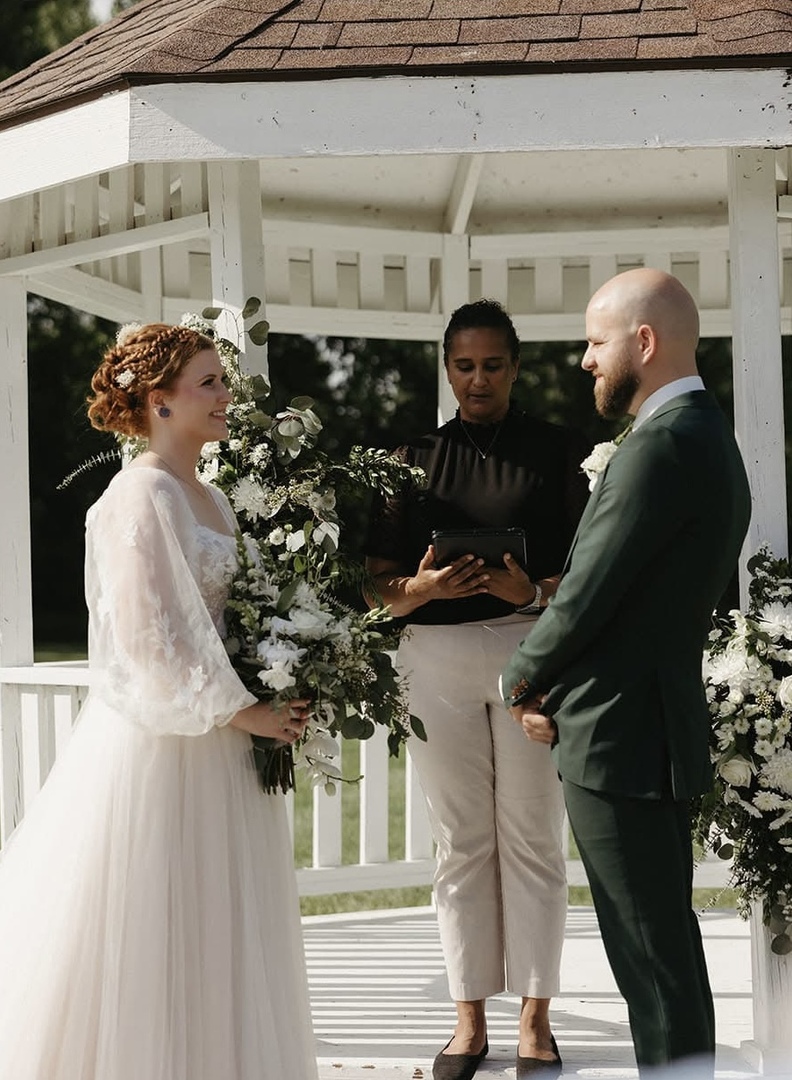 I believe every couple deserves a ceremony that honors their journey and the true essence of marriage: uniting two people in love, trust, and shared hope for a beautiful future together. I am dedicated to providing clear, prompt communication throughout the planning process, ensuring your date is secured and that you feel supported every step of the way so your ceremony is nothing short of perfect.